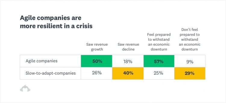 In our study, we found a strong correlation between agile companies (those that are able to adapt quickly to changing customer needs) and financial success during the pandemic, indicating that agility is key to resilience in a crisis.