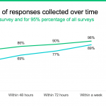 Find the time period that’s relevant for most of your audience. For an average survey (indicated by the green line in the chart above), as much as 86% of all responses are collected within 48 hours. After that, it’s typically time to send reminders to speed things up.