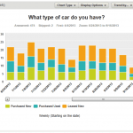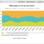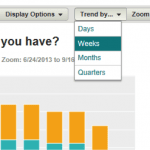 Without having to build any filters or export any data for further analysis, now you can see a clear trend in the data. You can also tell how many people answered the question each week, and instantly see any trends in how the answers are changing. There are many ways to configure your Data Trends charts to get to exactly the insights you need. Note the Trend by… and Zoom buttons at the top of each chart. These are the controls for customizing your chart’s timeframe and the amount of detail. Using the Trend control, you can see how your respondents’ answers have changed each day, week, month, quarter or even year (depending on how long your survey has been running).