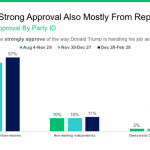 Something similar occurred in recent months in the percentage who strongly approve of Trump’s performance, which was 24 percent over the past week (while nearly twice as many, 45 percent, strongly disapprove).