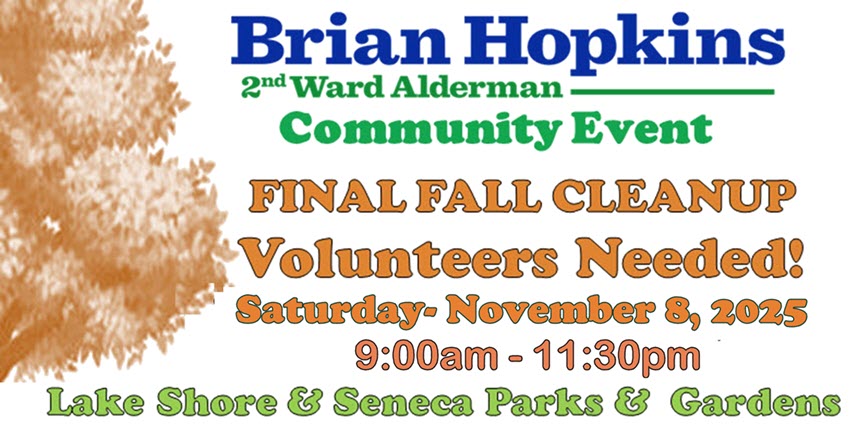The Lake Shore and Seneca Park Advisory Councils and Alderman Brian Hopkins are happy that you are interested in helping us as stewards of our natural resources. Please provide the information below if you are willing to volunteer on Saturday, November 8, 2025 at the Parks, Playgrounds and Gardens.
