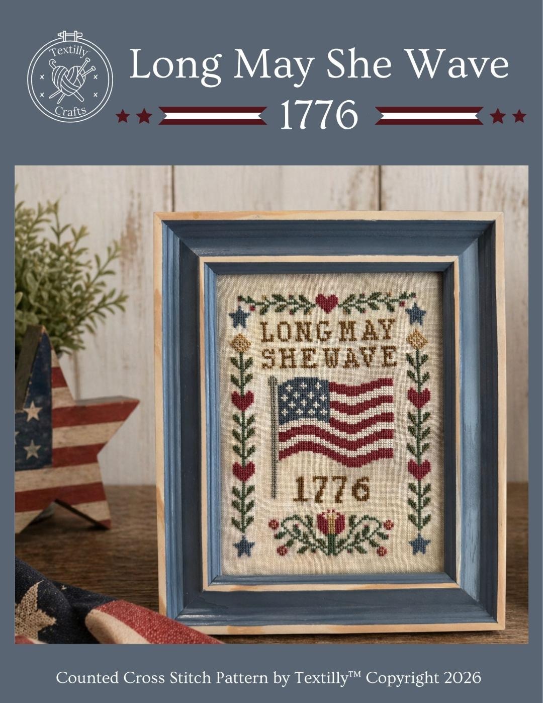 Now on to more good stuff - the reason you are here - the EXCLUSIVE Long May She Wave 1776 chartpack by Textilly Crafts.