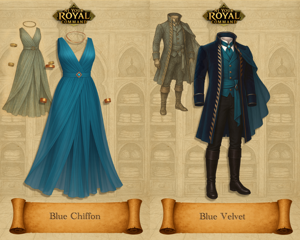 We're finalizing premium outfits for At Your Royal Command, and you get to decide which design makes it into the book. Take a look at the stunning options below, and choose your favorite! The winner will be selected as our chapter 8 premium outfit.