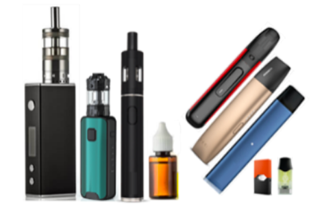 -Device with ‘sealed tanks’ using flavor cartridges or pods or with refillable tank, which needs to be filled with e-liquid available in bottles