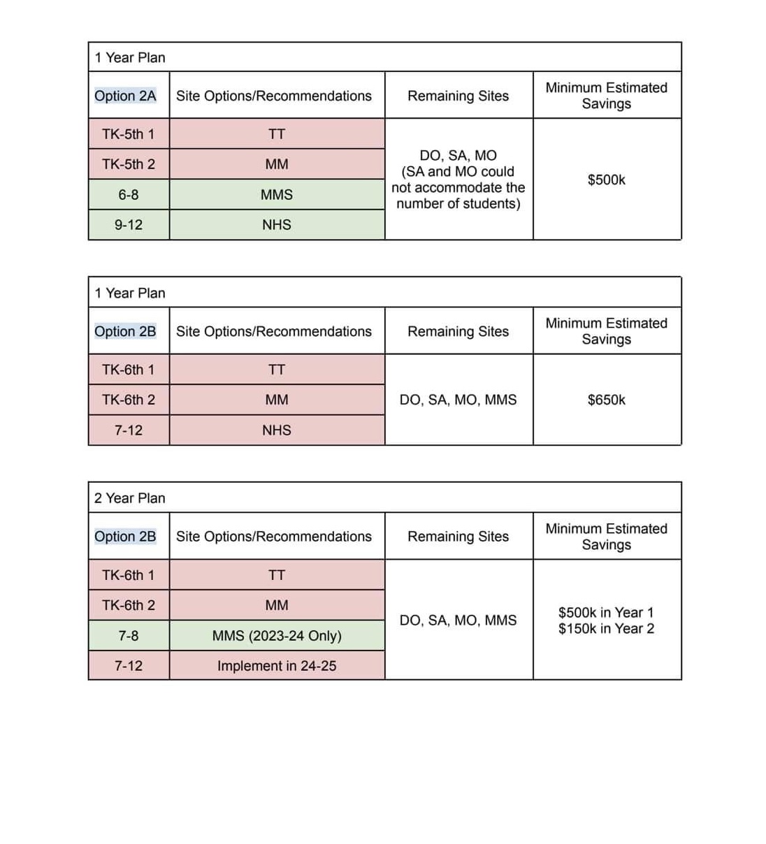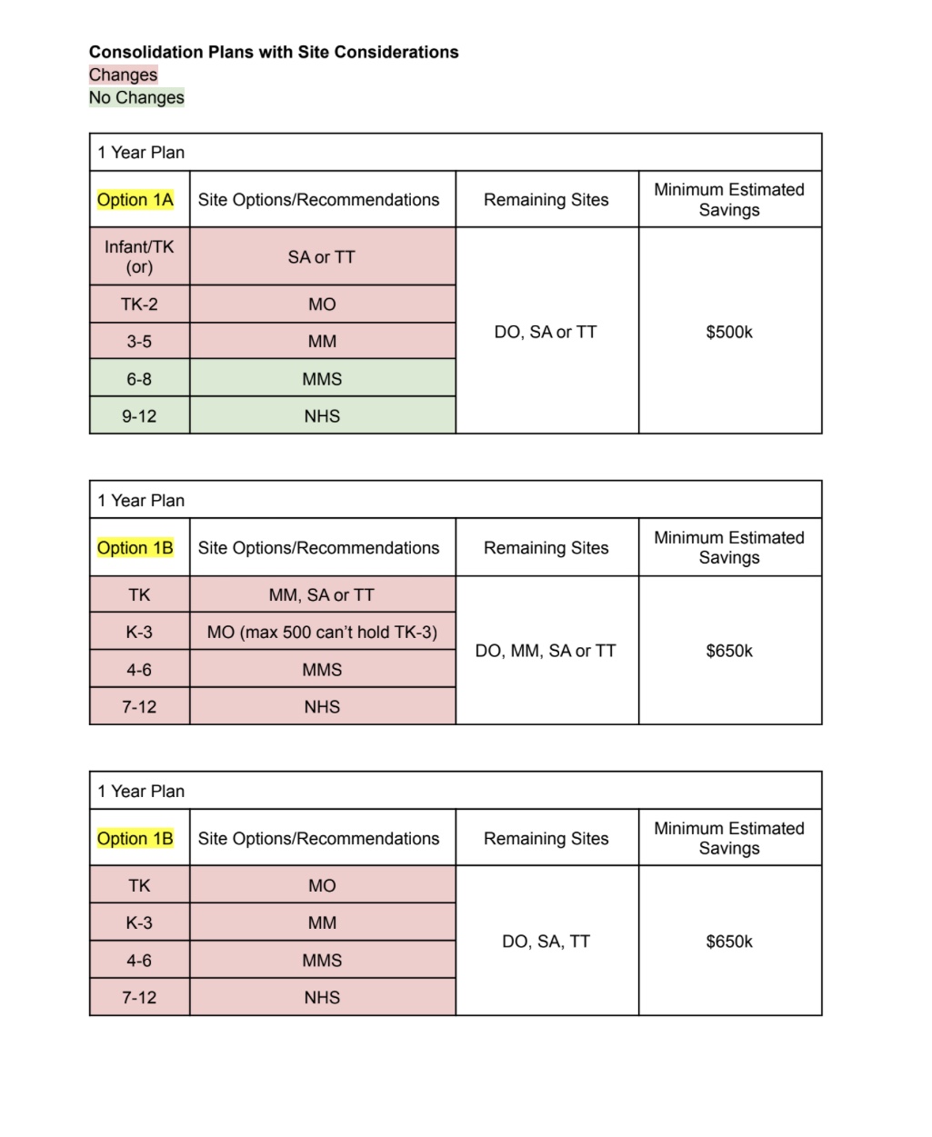 Which of the following reconfiguration options do you prefer as a third choice? 1A, 1B K-3 MO, 1B K-3 MM, 1B 2 year plan, 2A, 2B, 2B 2 year plan, 3A, 3B, 3A 2 year plan, or no consolidation. See charts at the bottom for consolidation options.