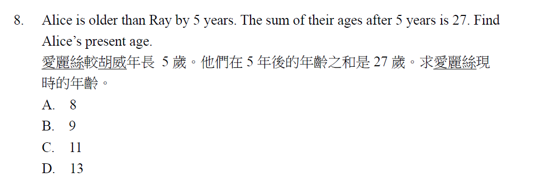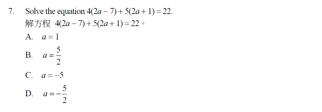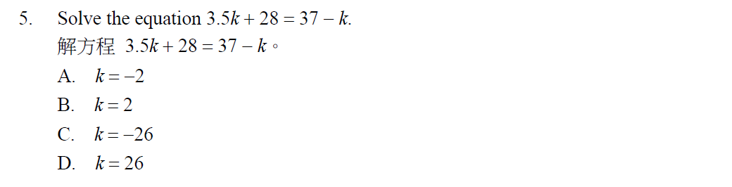 升中一 Quiz 小測試 - Simple Equations 簡易方程 |