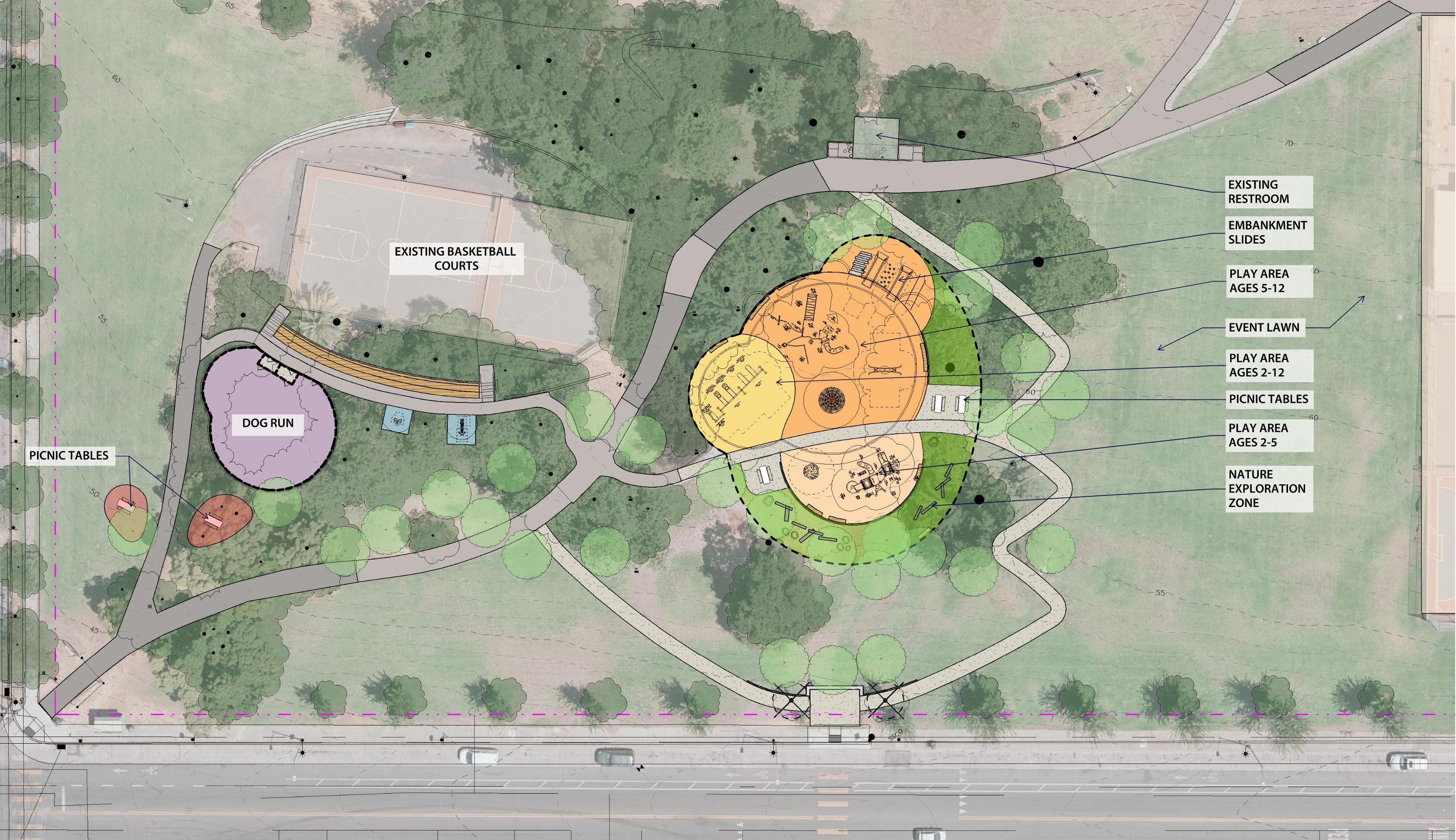 San Antonio Park Playground Survey Question Title * 1. What is your overall favorite option? Choose one. w 2 Option A Option B Question Title * 2. Why is this your favorite option? Describe below: w 0 Question Title * 3. Would you change anything about your favorite option? Describe below: w 0 Question Title * 4. If you had to reduce one of the following elements in the project, which one would you reduce? w 0 Reduce the number of swings Reduce the nature zone area/number of natural elements Reduce the play area with rubber surfacing Reduce the size of the play structure for ages 2-5 Reduce the size of the play structure for ages 5-12 Question Title * 5. If you had to choose only one, which would you choose: a dog park (shown in Option A) or a Fitness Area (shown in option B)? Either one will be located below the basketball courts, where the tot lot currently is. Choose one. w 0 Fitness area Dog play No preference I want both Question Title * 6. For a dog play area, do you prefer all large and small dogs combined together, or small and large dogs separated by size? Choose one. w 0 All dogs together Separate by size No preference Question Title * 7. Which is your preferred option for a new accessible entry path at 17th Ave? (Refer back to the plans in question 1.) Choose one. w 1 Option A Option B No preference Question Title * 8. Which is your preferred swing type? Choose as many as you like. w 0 Traditional belt & bucket swing Friendship swing Disc swing No preference Question Title * 9. Which is your preferred sensory play element? Choose as many as you like. w 0 Music Pretend/Imaginative Retreat spaces Nature/Natural No preference Question Title * 10. What do you envision in the nature-inspired play area? Describe below. (Images shown are examples) w 0 Question Title * 11. Which is your preferred type of physical play? Choose as many as you like. w 0 Climbing Overhead swinging Balancing Bouncing Spinning Net play See-saw Sliding Spring riders No preference Question Title * 12. Public Art will be incorporated into the project. Of the options below, which would you like to see. Choose as many as you like. w 0 Amphitheater steps mural Sculpture Mosaic seatwall Decorative playground fence panels Restroom wall mural Retaining wall mural No preference Question Title * 13. How often do you currently use the playground at San Antonio Park? w 0 Every day 1-3 times a week 1-3 times a month 1-5 times a year 6-10 times a year Never Question Title * 14. I like going to San Antonio Park Playgrounds because... Describe below: w 0 Question Title * 15. I don’t visit San Antonio Park Playgrounds because... Describe below: w 0 Question Title * 16. I would use San Antonio Park Playground more if... Describe below: w 0 Question Title * 17. How old are your children that would use the play area? Choose all that apply w 0 0 to 2 years old 2 to 5 years old 5 to 12 years old 13 to 18 years old Older than 18 Decline to answer Does not apply Question Title * 18. Do you have a disability? Or, if you are a guardian, does your child have a disability? w 1 Yes No Decline to answer Does not apply Question Title * 19. Which of the following disabilities do you or your child have? Check all that apply. w 0 Mobility and/or physical disability Hearing Vision Cognitive Autism spectrum Learning Mental health Decline to answer Does not apply Question Title * 20. What is your 5-digit zipcode? w 0 Question Title * 21. How did you hear about this survey/event? w 1 Nextdoor Facebook Twitter City website FOSAP, PAR, TRYBE, EBAYC or Eastside Arts Alliance Friend A visit to San Antonio Park Park Outreach Event Other (please specify) Question Title * 22. If you would like to be contacted about the design progress, please enter your name and email address below. w 0 Name: Email address: Question Title * 23. Do you have additional comments? Is there anything missing from the design that you would like to see? Please describe below. w 0 Done