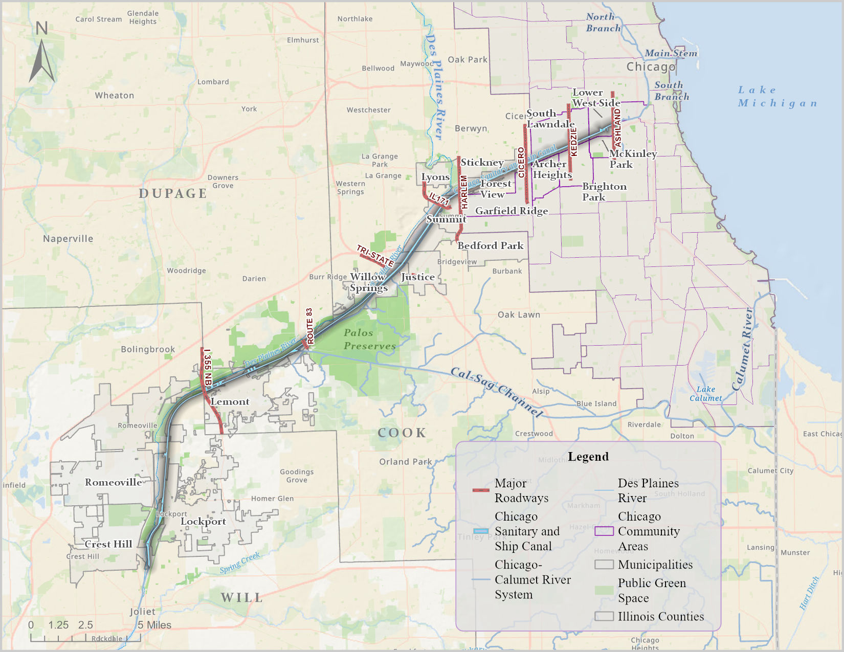 Survey questions are about this body of water which stretches 28 miles from the City of Chicago to Lockport.