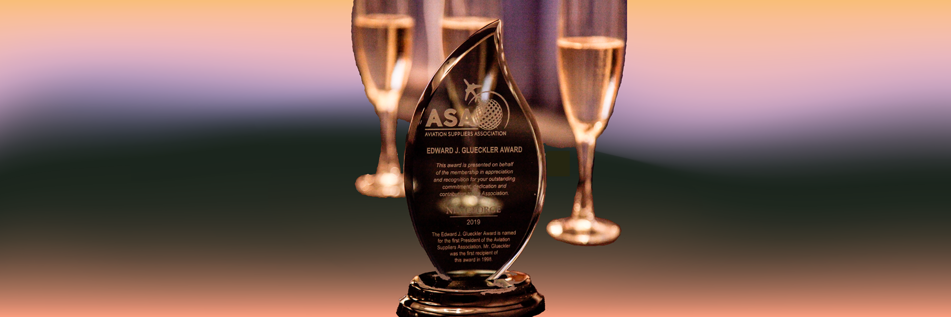 The Edward J. Glueckler Award is presented annually in recognition of outstanding commitment, dedication and contribution to the Aviation Suppliers Association and to the Aviation Industry.