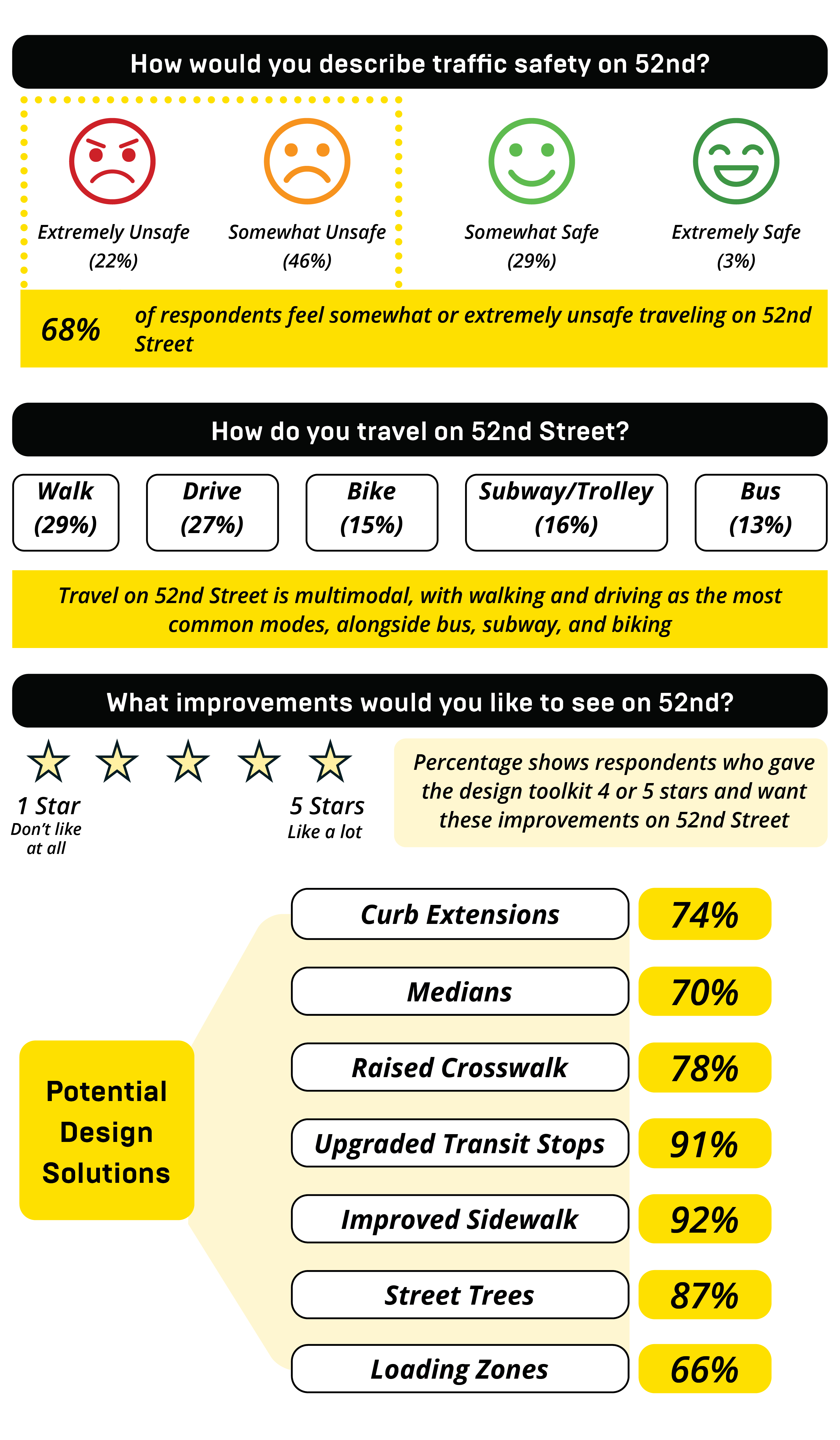 Thank you for taking the time to tell us what you think. Together, we can create a safer, cleaner, and greener 52nd Street for everyone!
