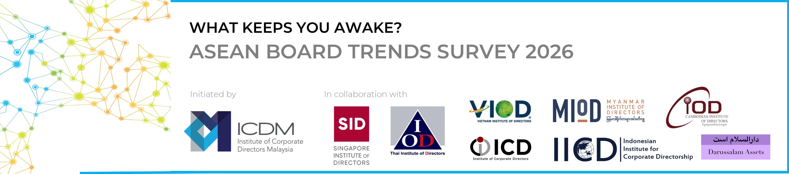 This survey is undertaken by the Institute of Corporate Directors Malaysia (ICDM) in collaboration with the Vietnam Institute of Directors (VIOD), Singapore Institute of Directors (SID), Institute of Directors Thailand (IoD Thai), Indonesian Institute of Corporate Directors (IICD), Myanmar Institute of Directors (MIoD), Institute of Corporate Directors, Philippines (ICD Ph), Cambodian Institute of Directors (Cam-IoD) and Darussalam Assets Sdn Bhd under the ASEAN IODs Network initiative.