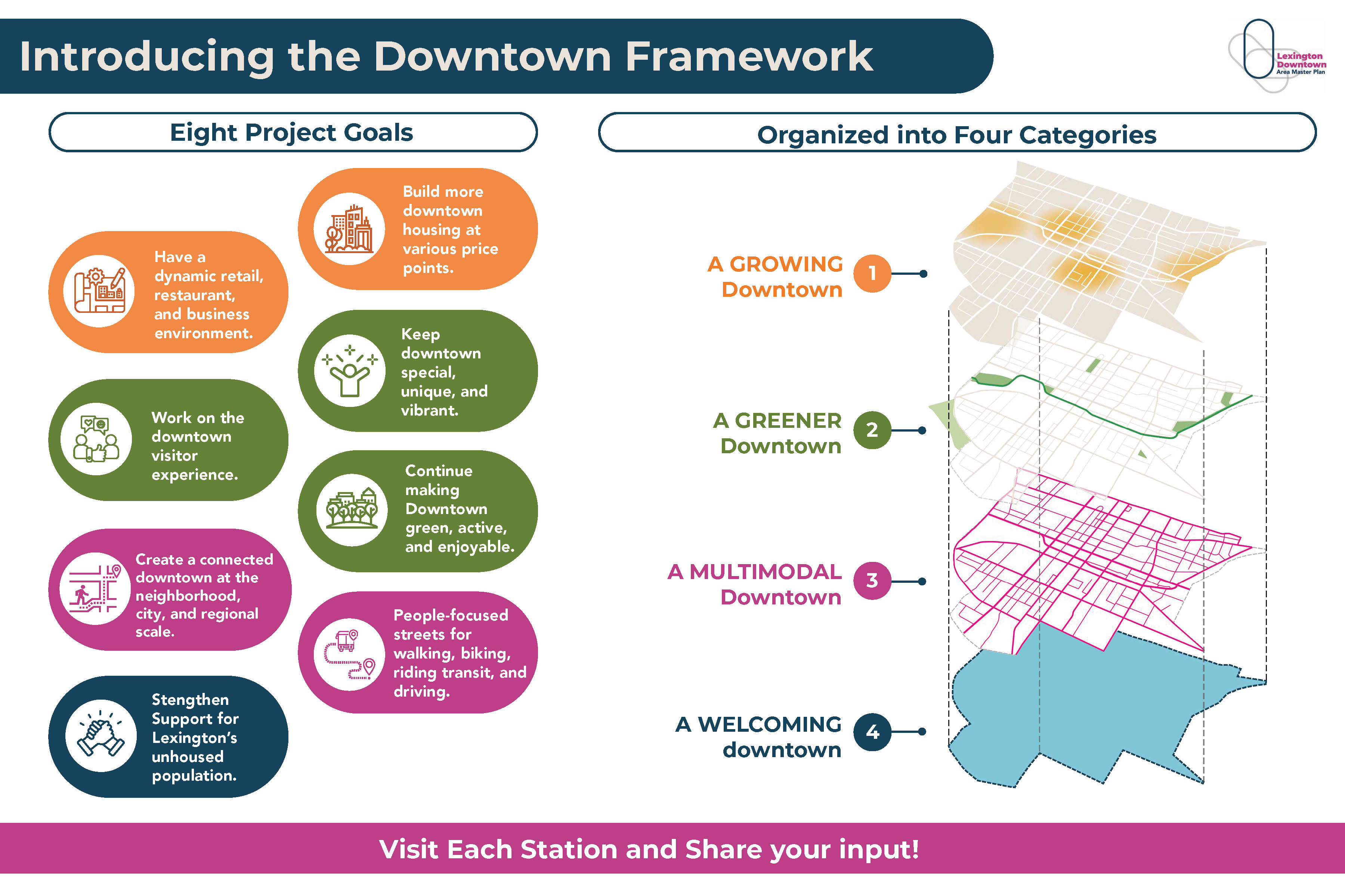 At our second community workshop, called Downtown Designing, participants reviewed draft goals and strategies for the future of Downtown Lexington and shared their feedback. If you were unable to attend, or would like to share more feedback, this online survey provides another opportunity to review those same ideas and tell us what resonates most.
