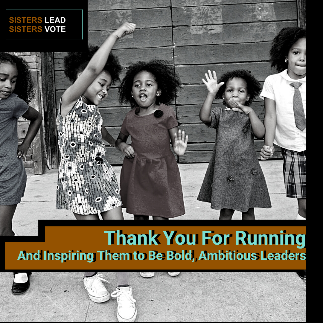 Thank you for your candidacy during the 2022 Election cycle. Whether you won or lost, Sisters Lead Sisters Vote is grateful for your leadership. We believe running for office is just the beginning. We know your community leadership and public service will continue, be it as an office holder, future candidate, activist, or other role which advances our community.