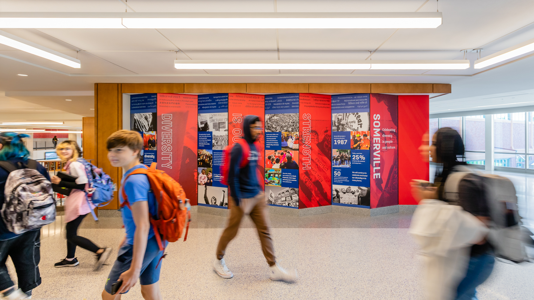 Experiential Graphics are visual and experiential artwork, images, and stories that will be displayed throughout your new school. These graphics and exhibits can represent special stories, celebrate the history and values of Lexington, and help people find their way around the new building. Most importantly, the experiential graphics will contribute to building a sense of community and belonging for every student, no matter who they are.