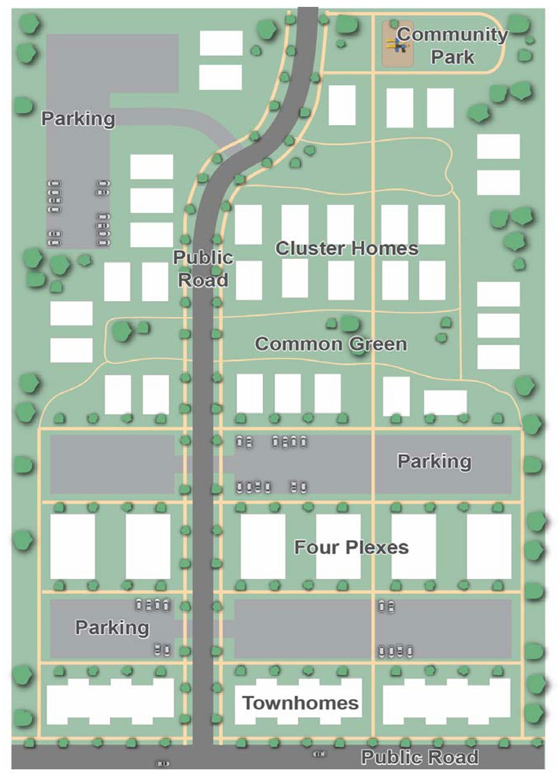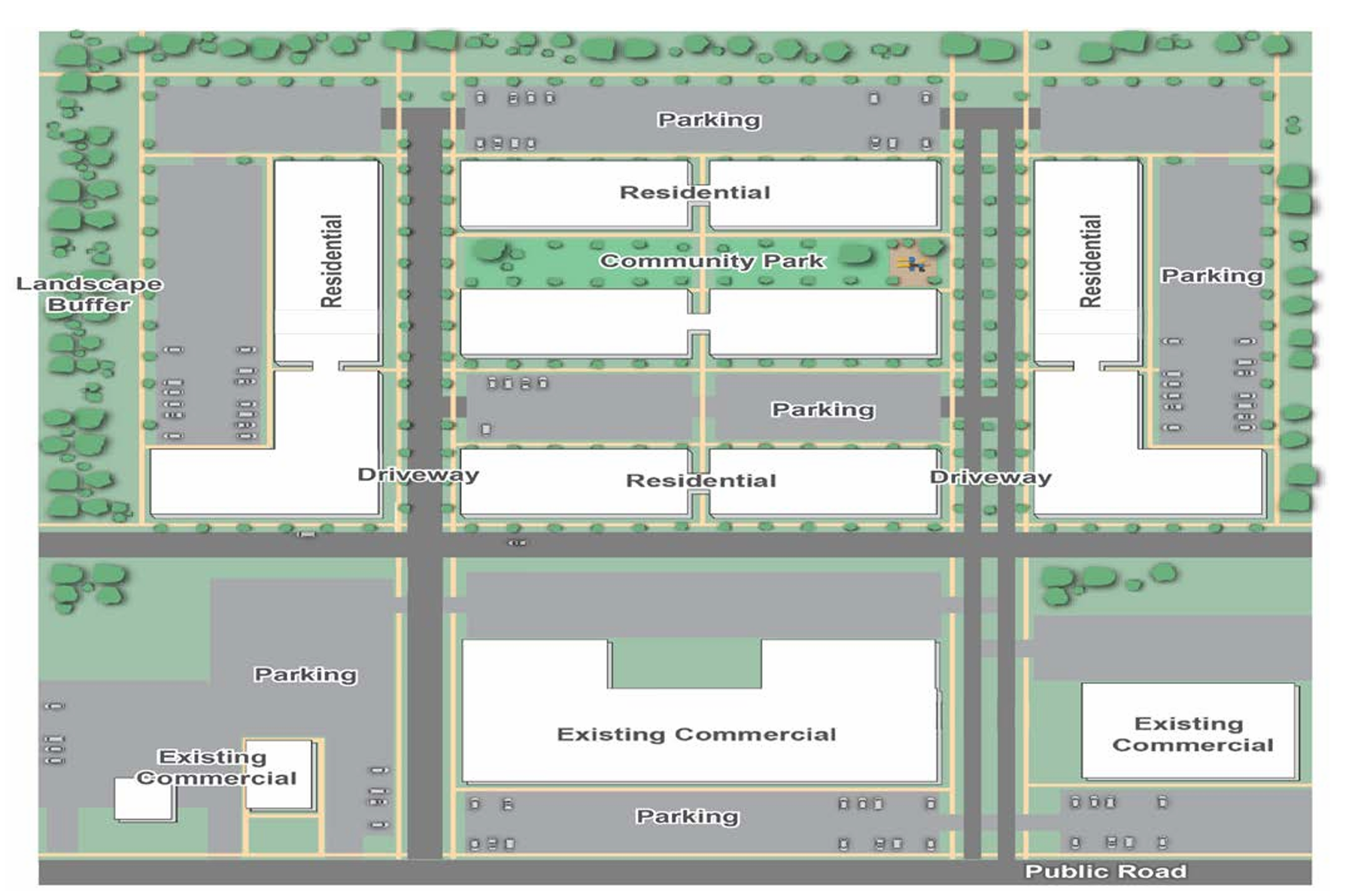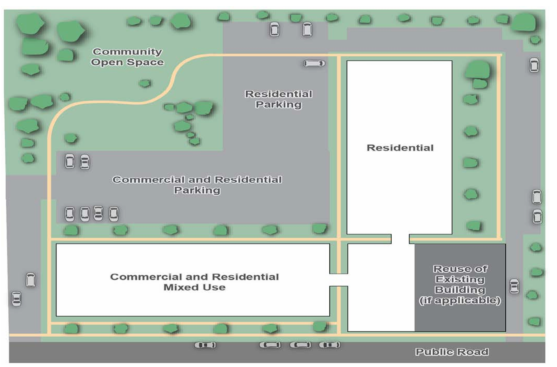 : Designed for commercial and residential mixed-use redevelopment, this typology targets expansive parcels near the Great Lakes Mall but may be appropriate on large sites across Mentor.