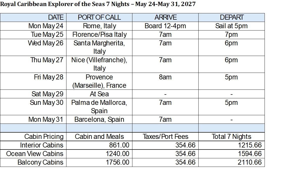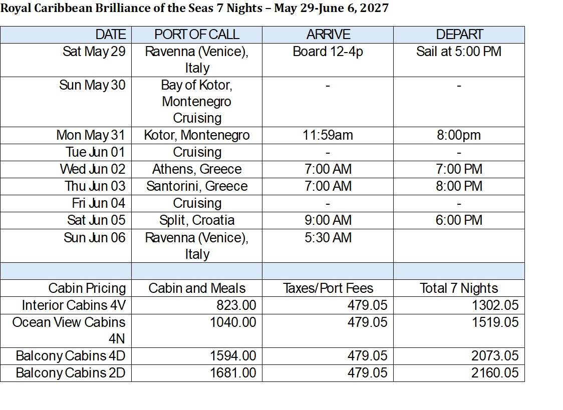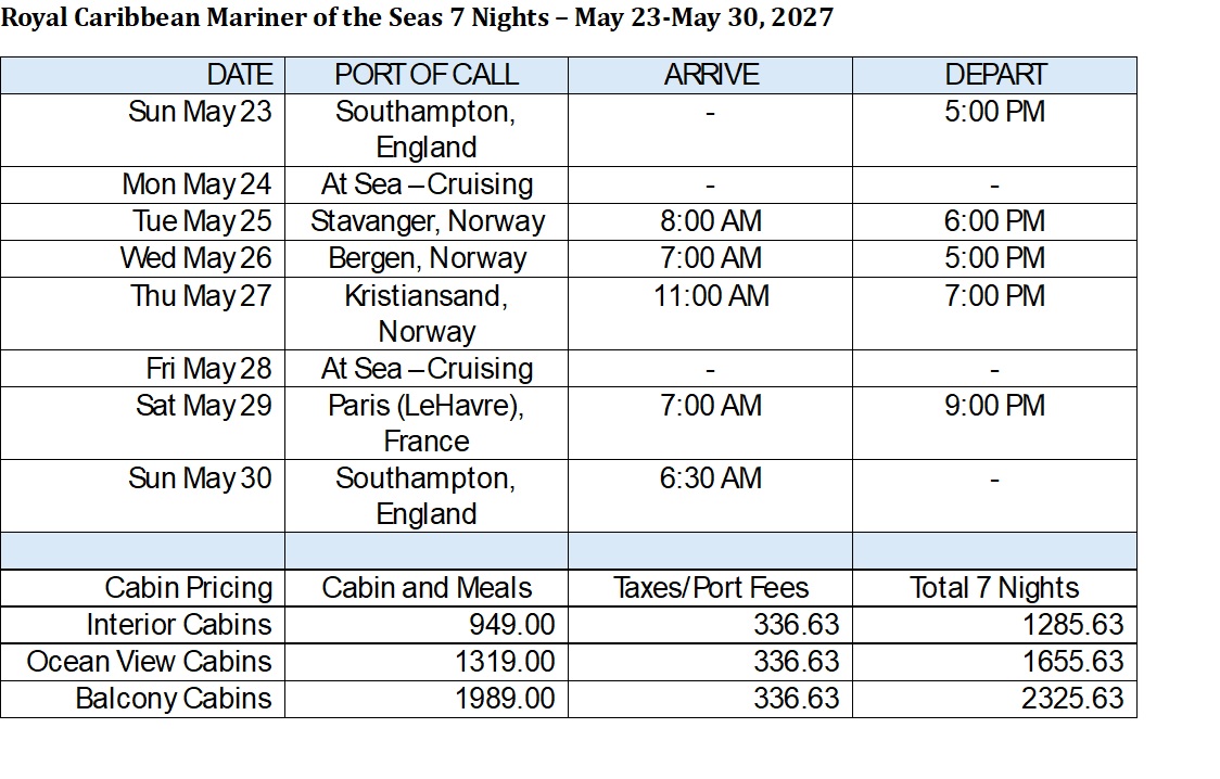 We're planning our 2027 Seminar at Sea cruise and want your input! Below are the available options with destinations, dates, and price ranges. Please select the TWO cruises you would most like to sail on.