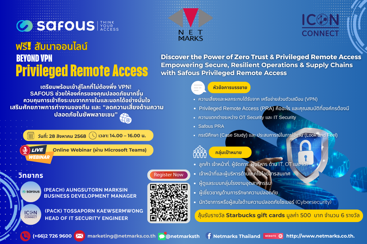 Webinar Registration "Product Safous PRA (Privileged Remote Access) " Date 28 Aug 2025 Time 2:00 PM-4:00 PM |