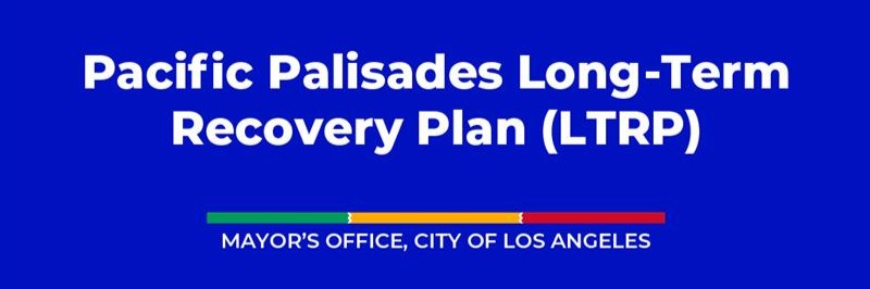 The City of Los Angeles is currently developing a Long-Term Recovery Plan (LTRP) for Pacific Palisades that will guide recovery strategies, projects, and implementation in the short (1-2 years), medium (2-5 years), and long-term (5+ years). The Federal Emergency Management Agency (FEMA) and California Governor’s Office of Emergency Services (Cal OES) recommend that communities create a Long-Term Recovery Plan following a disaster to guide decision-making, incorporate community feedback, and better position the community for future funding opportunities.