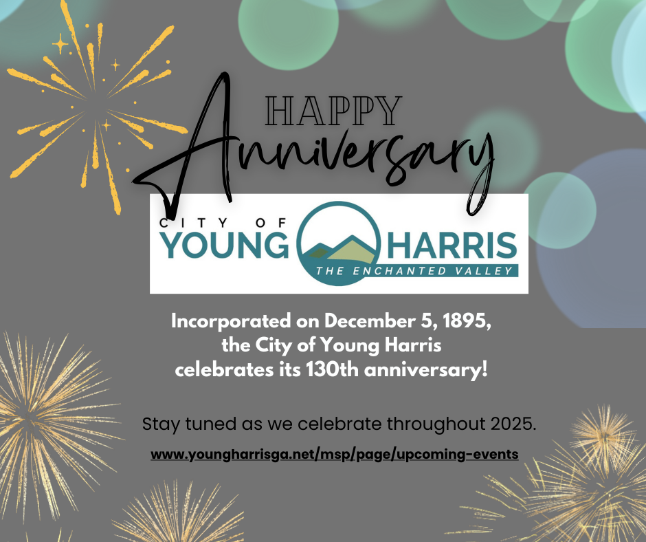 The City of Young Harris appreciates any stories or photos you would share in celebration of our 130th Anniversary. Please take a few minutes to answer this short survey. Thank you!