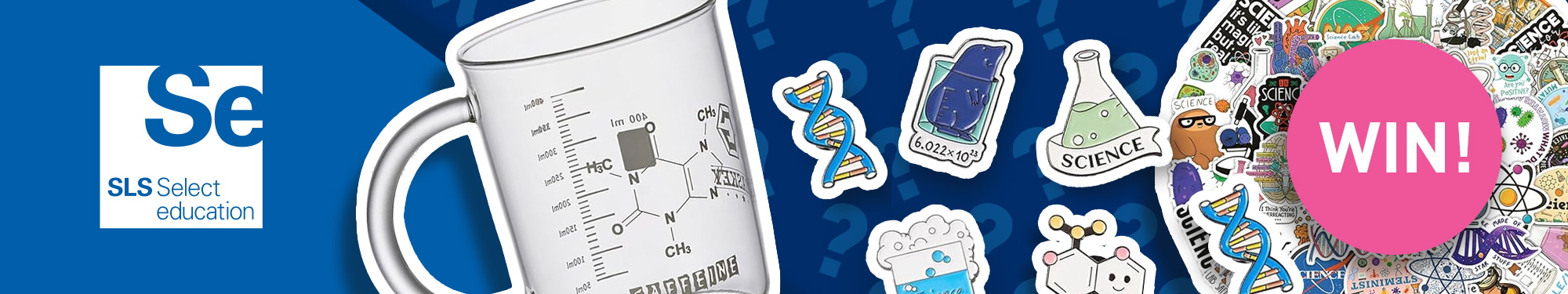 All correctly completed quizzes will be entered into a prize draw to win fun education-themed stickers, pin badges, and a science-style coffee beaker mug!