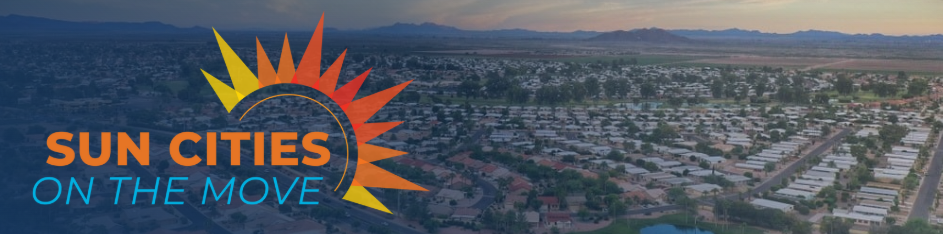 The Sun Cities on the Move project is sponsored by Maricopa Association of Governments (MAG), the regional transportation planning organization, and conducted in partnership with Valley Metro and Maricopa County. This project will explore potential transportation alternatives in Sun City and Sun City West based on the unique mobility needs of these communities.