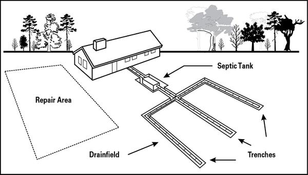 In this example, if the property connects to a STEP sewer system, the old drainfield and repair area may not be needed and could be built upon.