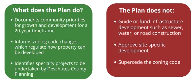 The purpose of this online open house is to gather input on the Terrebonne Community Plan. The Plan is being updated by Deschutes County's Community Development Department. This document helps decision makers understand