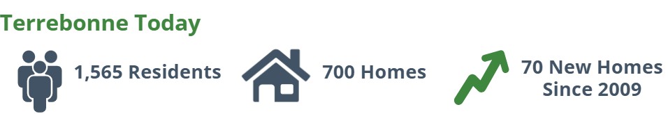 Terrebonne has a small mix of businesses that mainly serve local residents and nearby rural areas. Because Terrebonne is a Rural Community, it can have more business growth than most rural land, but not as much as a city. Any new development must fit within the community boundary and have the needed roads, water, and sewer services.