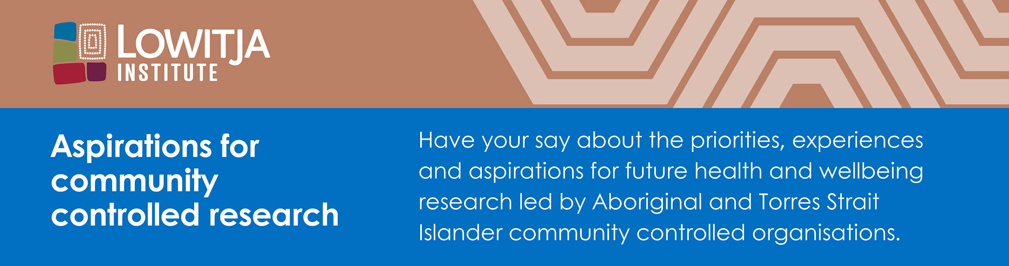 The survey is designed to gain an understanding of the aspirations of the Aboriginal and Torres Strait Islander community-controlled sector in relation to research, and to increase the availability of health research that reflects the priority needs of Aboriginal and Torres Strait Islander peoples.
