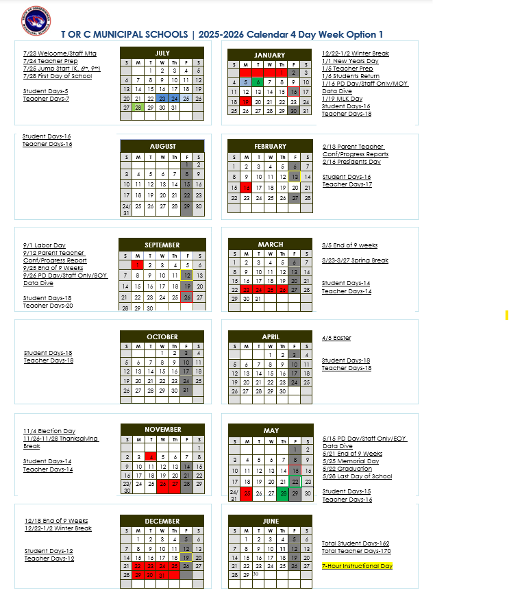 Calendar is based on current Bell Schedule