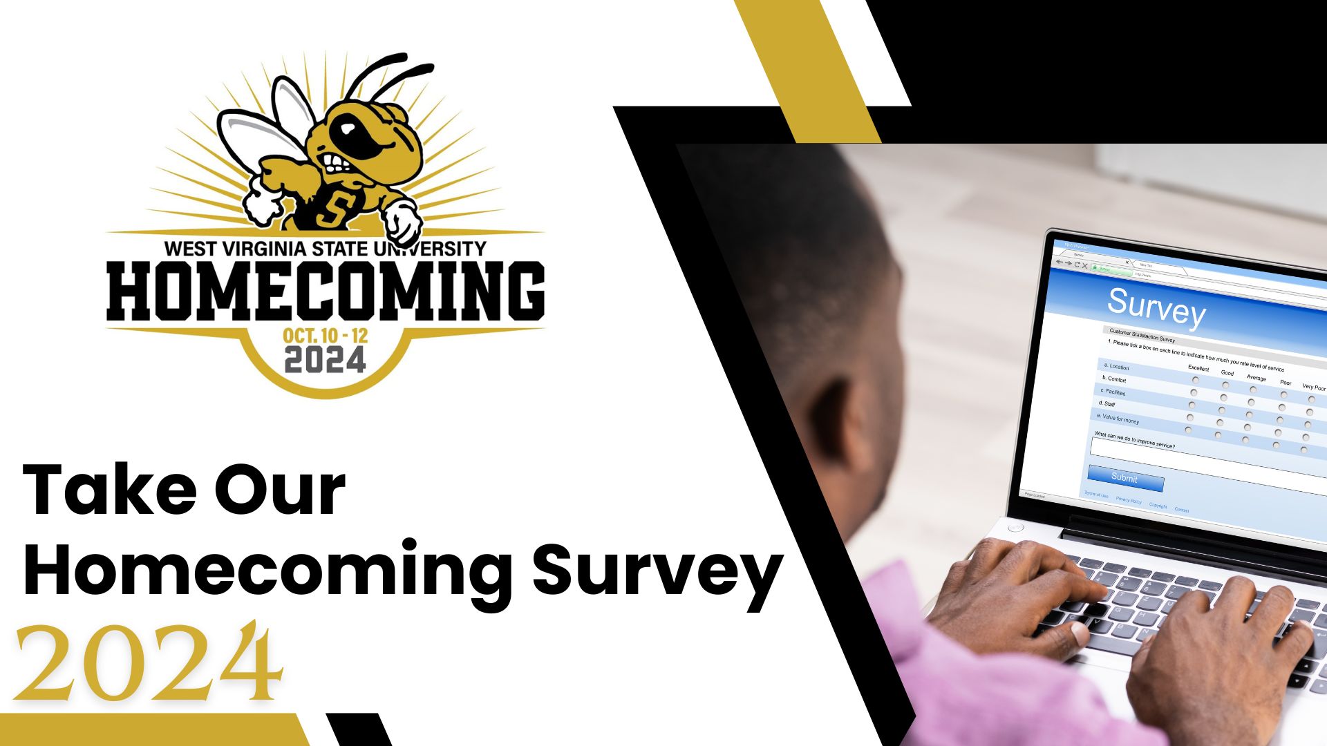 Thank you for attending West Virginia State University's Homecoming Weekend on Oct. 10-13. Please assist us in shaping future events by providing your feedback on the survey below. Your input is greatly appreciated!