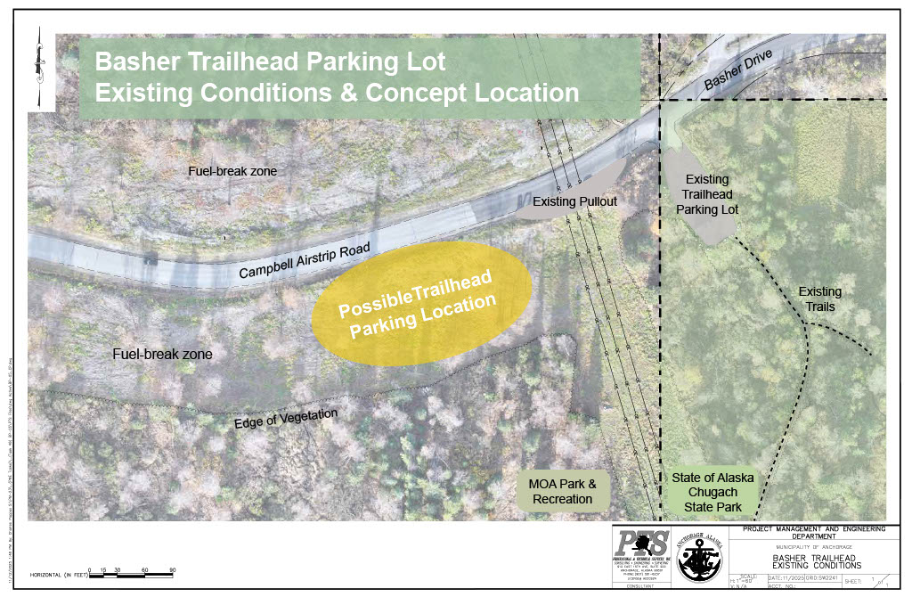 The Municipality of Anchorage is planning improvements to the Basher Trailhead Parking Lot to improve safety, access, and overall user experience. This survey will help inform parking capacity, layout, amenities, and safety features as the design progresses. Thank you for sharing your input.