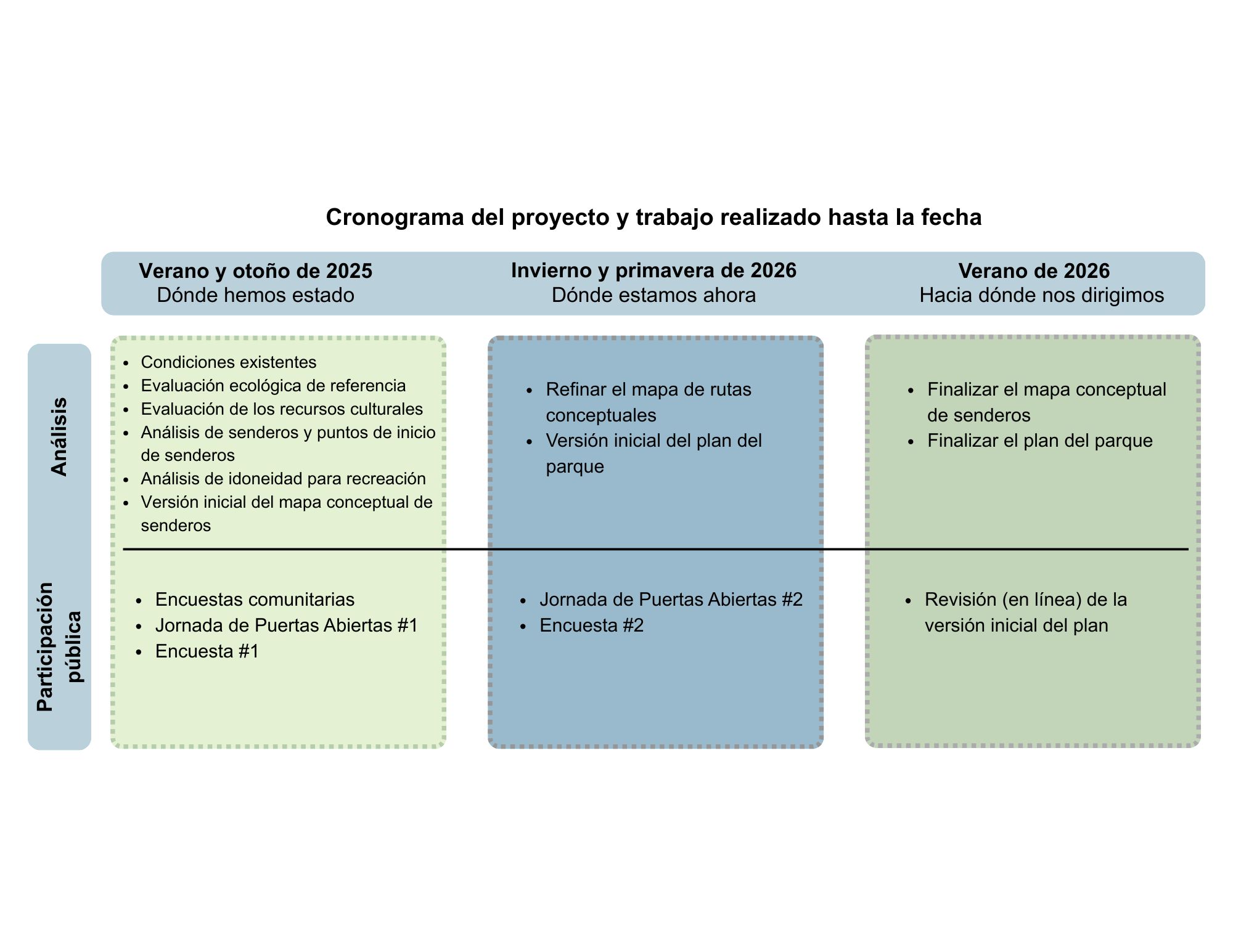 Los senderos se están redirigiendo, realineando o cerrando para proteger mejor los hábitats de la vida silvestre, reducir la erosión y evitar impactos en las áreas más sensibles del parque.