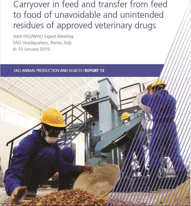 To receive an hard copy of Carryover in feed and transfer from feed to food of unavoidable and unintended residues of approved veterinary drugs - Report of the Joint FAO/WHO expert meeting – 8–10 January 2019, FAO headquarters, Rome, Italy |
