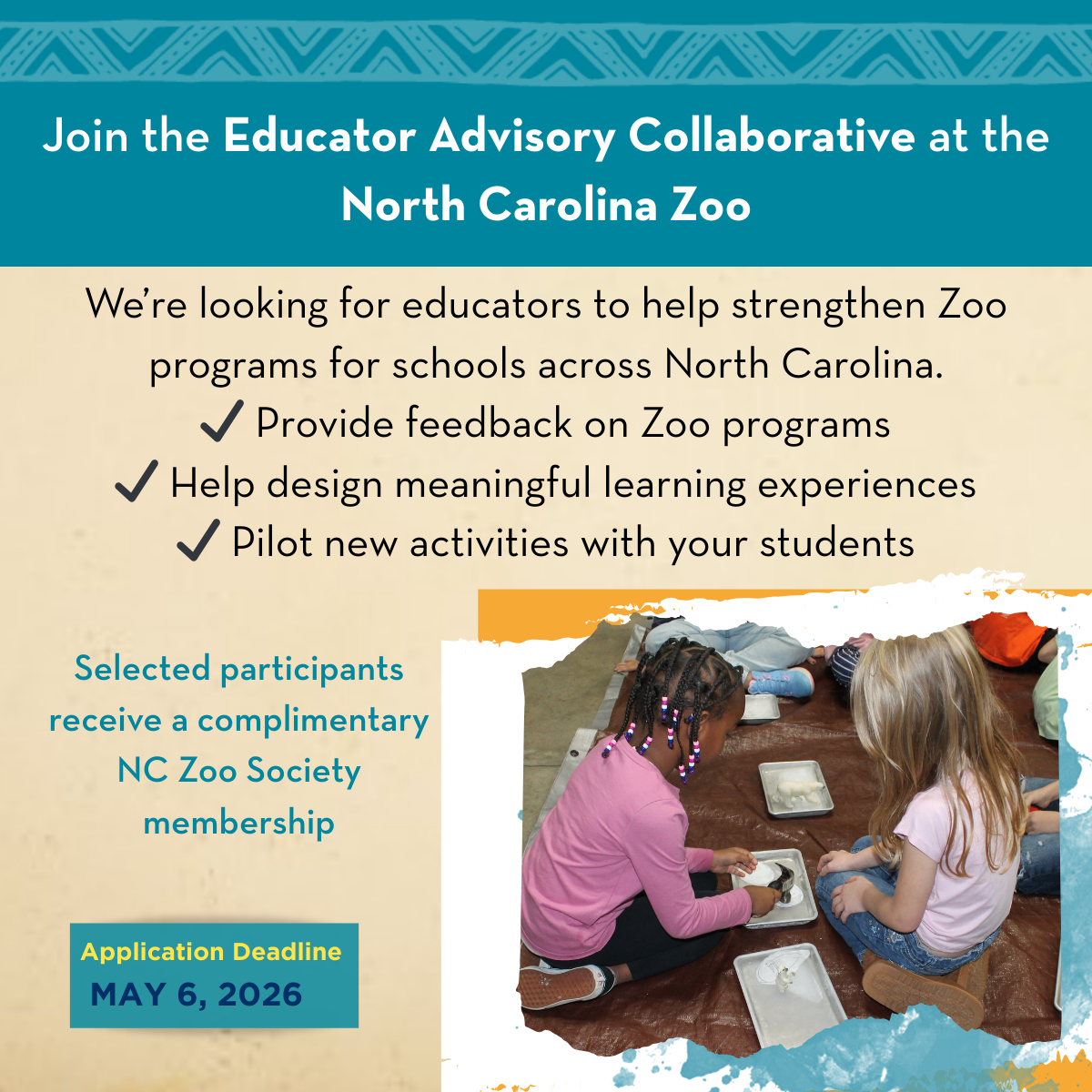 • Provide feedback and guidance on how the North Carolina Zoo could better serve education programs across the state.