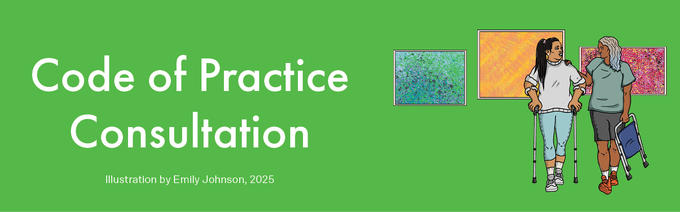 This survey will help develop new, inclusive guidelines within the Code of Practice for Visual Arts, Craft and Design, strengthening support for artists who have carers, as well as artists who are carers or support workers themselves. Your anonymous responses will directly inform these new guidelines.