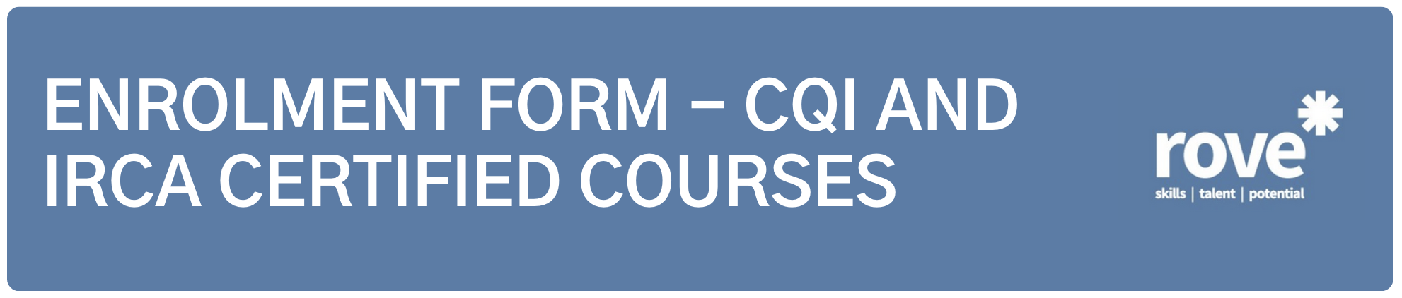 Enrolment: All enrolment applications are subject to review and approval. Your place on the course will only be confirmed once we have assessed your application, confirmed that you meet the CQI and IRCA prior learning requirements and issued written confirmation.